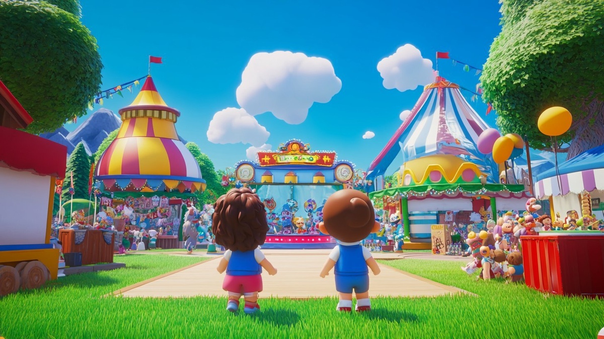 Создано на основе запроса: a trivia videogame gameplay on playstation 5, the game is 2D, two characters on a stage, left and right, cute playful puffles, carnival theme, outdoors, blue sky, grass, there are people in audience, with UI and HUD, in pixar style --- Автоперевод: Игровой видеоигры на PlayStation 5, игра - 2D, два персонажа на сцене, слева и справа, милые игривые пуховики, тема карнавала, на открытом воздухе, голубое небо, трава, есть люди в аудитории, с пользовательским интерфейсом и hud, в стиле Pixar Красиво вышло? 🤔 https://dzen.ru/id/65c0c65c86e4f837c27b24d7 #ИИ #AI #нейросеть #midjourney #art