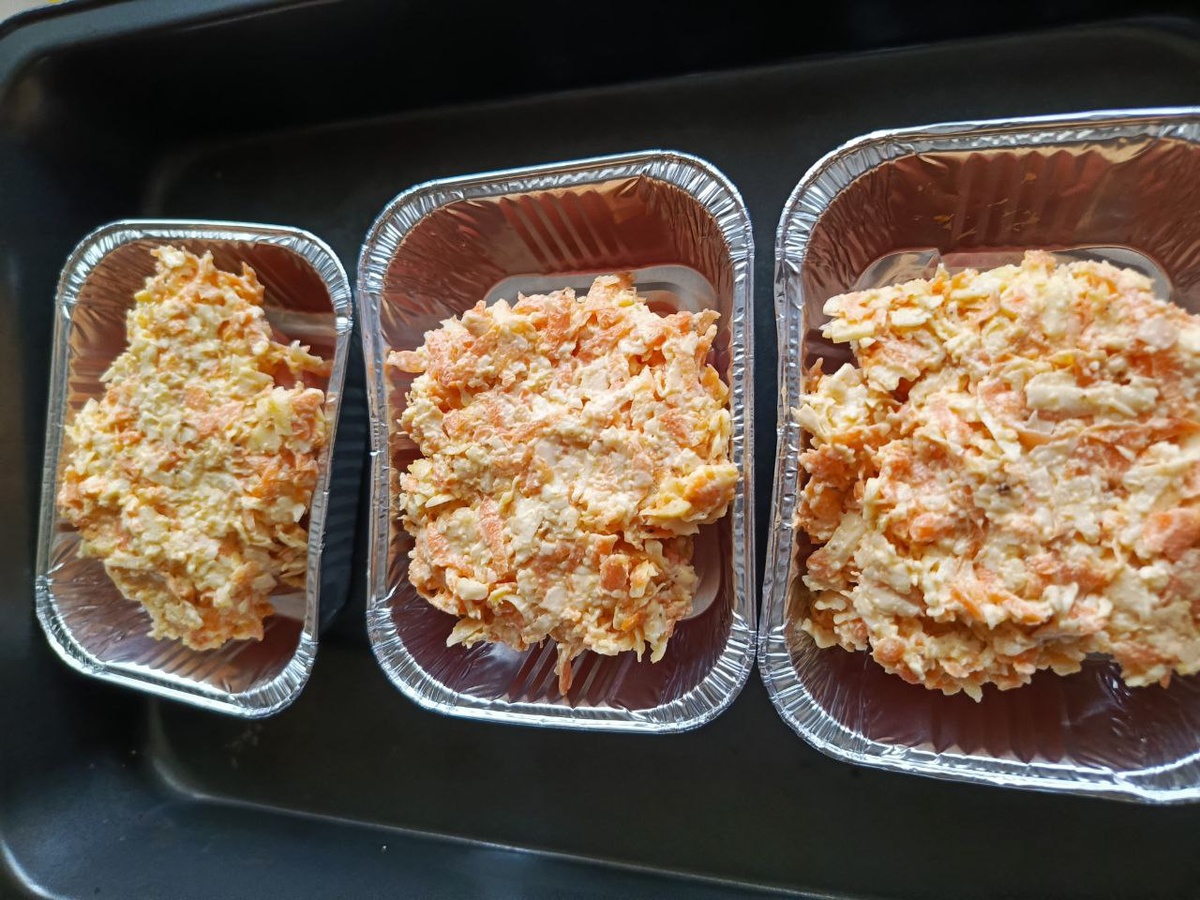 Давно я не выкладывала, как готовлю. Наверное, вы соскучились. Хочу возобновить эту рубрику. Надеюсь на вашу поддержку. Сначала нужно купить рыбку. Я выбрала филе тунца, так как нет костей. На фотографии можно увидеть, как выглядело филе тунца. Сейчас много всего можно купить в магазине, тунца тоже. Еще нужен твердый сыр, майонез или сметана (моя мама вот не очень любит майонез), морковь, чеснок (у нас есть гранулированный) и специи для рыбы. Морковь сырую трём на терке. А, забыла сказать, нам нужна тёрка, , чтобы тереть морковь и сыр, миска для смешивания шапочки, одноразовые формочки из фольги. Я не люблю отмывать противень, поэтому очень люблю использовать такие формочки. Продолжаю. Нужно натереть сыр и морковку. Листайте карусель Главное, в процессе готовки не съесть всё сразу:) Потом всё смешиваем, добавляем майонез или сметану, специи, чеснок. Смотрите, какая шапочка получилась, то есть это пока просто салат как будто. Моем филе тунца и кладем его в формочки. Формочки заран