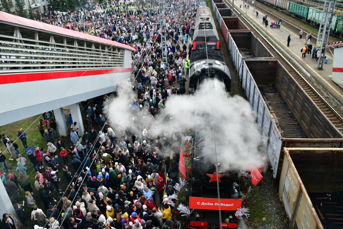 В Янаул сегодня прибыл специальный эшелон «Поезд Победы», организованный Горьковской железной дорогой в рамках мероприятий, посвященных 80-летию Победы в Великой Отечественной войне. Об этом сообщили в администрации Янаульского района. Участники торжественной встречи выстроились в шеренгу «Бессмертной роты», символизируя преемственность поколений и уважение к подвигам предков. Звучали патриотические марши в исполнении духового оркестра, были подготовлены театрализованные зарисовки и музыкальные номера. Участники мероприятия возложили венки к подножию паровоза – труженика, установленного на привокзальной площади станции Янаул. «Поезд Победы» будет курсировать по всей Горьковской магистрали до 6 мая. Ранее «Башинформ» рассказывал как Паровоз Победы встречали в Уфе.