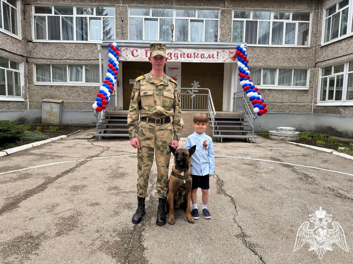 В мероприятии приняли участие сын сотрудника Пермского военного института Артём С. и курсант факультета (кинологического) со служебной собакой по кличке Джой с презентацией по теме «Кто такие служебные собаки».