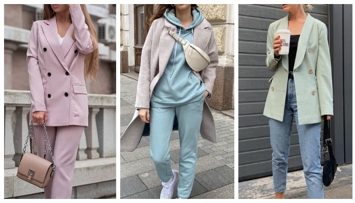 С приходом весны пробуждается желание обновить гардероб и добавить в него нежные, женственные образы. Мы подготовили для вас подборку шикарных весенних аутфитов, которые помогут вам выглядеть стильно и элегантно. Не упустите возможность вдохновиться нашими идеями! Брючные костюмы в пастельных оттенках идеально сочетаются с шёлковыми майками на тонких бретелях в бельевом стиле. Завершить образ помогут светлые остроносые туфли-лодочки или белоснежные ботильоны. Небесно-голубой брючный костюм свободного кроя создаёт ощущение лёгкости и комфорта. Добавьте к нему изысканную блузу с принтом, украшенную невесомыми перьями. Завершите образ элегантными голубыми туфлями-лодочками на высоком каблуке и миниатюрной кожаной сумкой с короткими ручками. Этот наряд не оставит равнодушным ни одного человека из вашего окружения. Повседневный кэжуал аутфит уже в этом сезоне можно составить с помощью брючного костюма пастельного оттенка, который отлично перекликается с белым топом и белыми кроссовками. Пуд