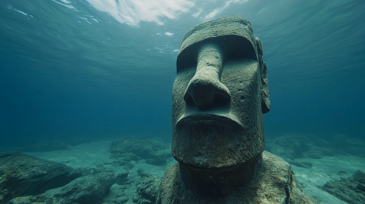 Создано на основе запроса: necesito ver un moai sumergido en las aguas calipso del pacífico
