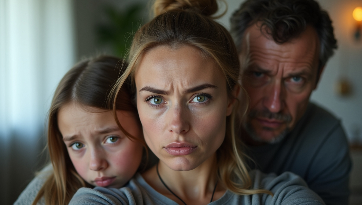 Повернув ключ в замке, Анна вошла внутрь и увидела странную картину: посреди её гостиной, уперев руки в бока, стояла Лида — новая жена Сергея. Сам Сергей сидел на диване, опустив голову и зажав её между ладонями. Маша стояла у окна, испуганно глядя на незваных гостей.