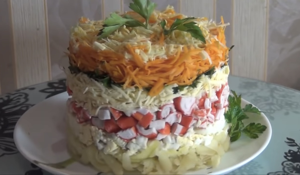 Всем Добрый День! Сегодня я решила поделиться с вами наивкуснейшим и нежным салатом «Бархат». Для его изготовления мне понадобилось ведёрко из под квашеной капусты с отрезанным дном) Рецепт далее под фото. Рецепт яйцо вареное...3 шт крабовые палочки....200-250 г сырая морковь......2 шт (небольшие) картофель вареный....3 шт сыр твердый......100-200 г зелень...по вкусу майонез...250 г Всем приятного аппетита🥨