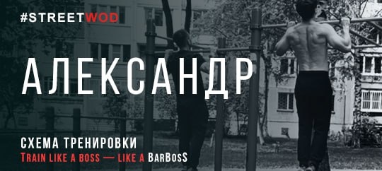 💪 #StreetWOD@swtBarBosS Название: Александр Александр Македонский (Александр III Великий, 356–323 до н. э.) — один из величайших полководцев в истории, создатель гигантской империи от Греции до Индии. Формат выполнения: ● Выполнить круговую тренировку. Количество кругов зависит от выполнения подтягиваний. Подтягивания увеличиваются с шагом +1 каждый круг. Когда увеличить повторения в подтягиваниях не получается - это заключительный круг. Набор упражнений: ● Подтягивания – 1→2→3→4→MAX ● Отжимания на брусьях – 10 ● Выпады (сумма) – 20 Отдых: нет отдыха между упражнениями и кругами. Пробуй, адаптируй и пиши свои впечатления от схемы... или не пробуй и тоже пиши свои впечатления!