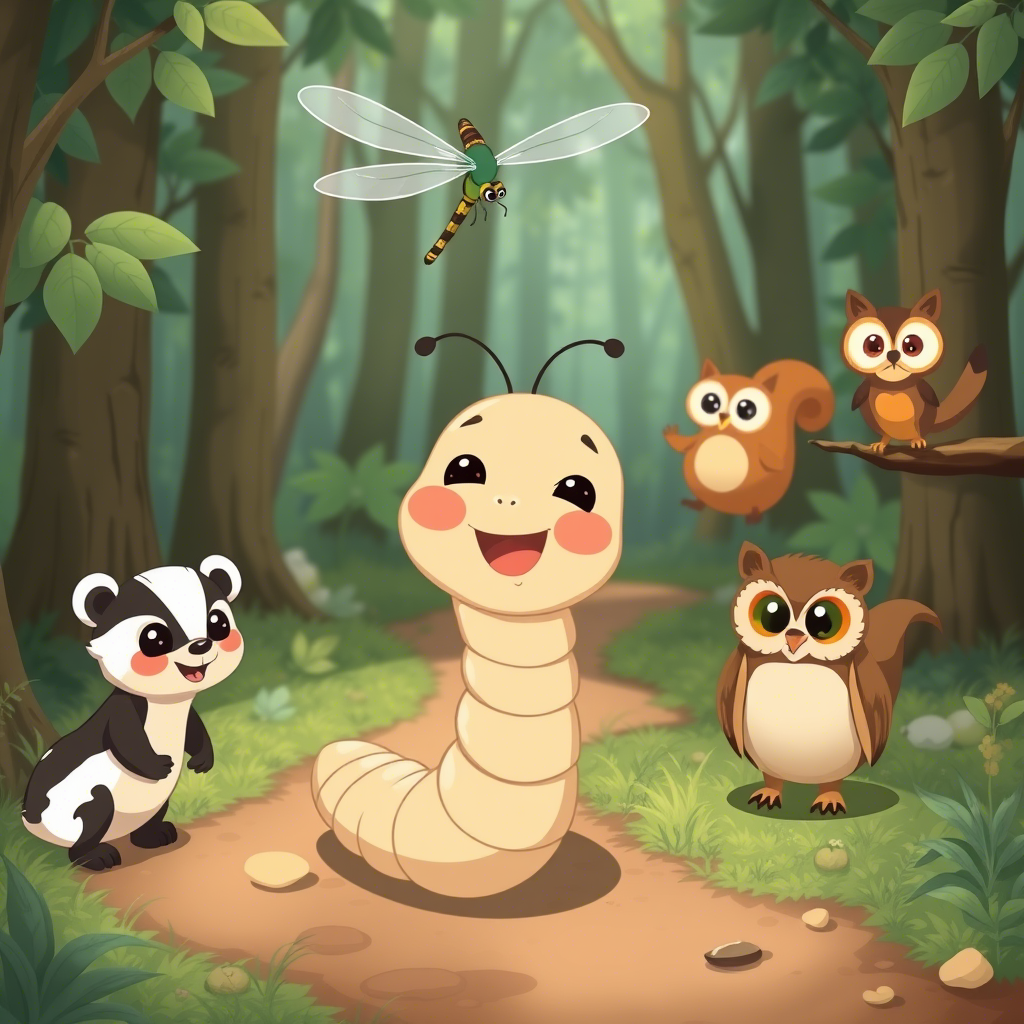 В тенистом уголке волшебного леса, под старым трухлявым пнём, жил червячок по имени Мирон. И было у него одно странное свойство — куда бы он ни собирался, он всегда опаздывал. На совет зверей? Приползал, когда все уже расходились.