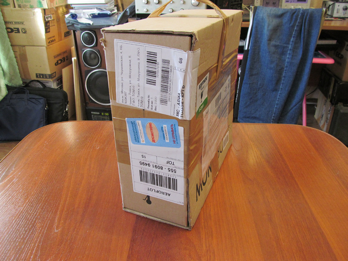 Ну а теперь перейдем к распаковке посылки с сюрпризом. Посылка доставлена авиапочтой сервисом СДЭК. Я до последнего момента не знал, что будет в данной посылке. На квитанции, наклеенной на полученную коробку, было написано – грампластинки. Но давайте откроем коробку. А внутри еще одна коробка.