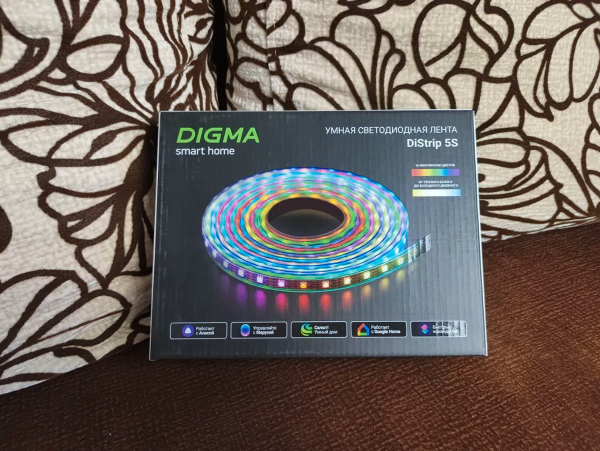 Всем привет. Решил обустроить себе игровую зону, сделал зону из поролона и решил ее подсветить, встал вопрос покупки ленты, долго искал, цена везде кусалась по примеру сбера и яндекса. Наткнулся чисто случайно на дигму, ценник приятно удивил, и к тому же она поддерживала умное управления и всех этих ассистентов. Так как главным критерием было умное управление, и у меня есть колонка с афиной, решил приобрести ее. Плюсов в отличии от конкурентов достаточно, к примеру за цену ниже, она длиной 5 метров, есть так же голосовые помощники (управление ими), и большой спектор управления через мобильное приложение и по голосу, приложение называется Digma SmartLife, скачивается с маркета или апстора, проходите регистрацию и все. Что самое интересное, есть микрофон и режим светомузыки, это значит что она мигает в такт музыке.