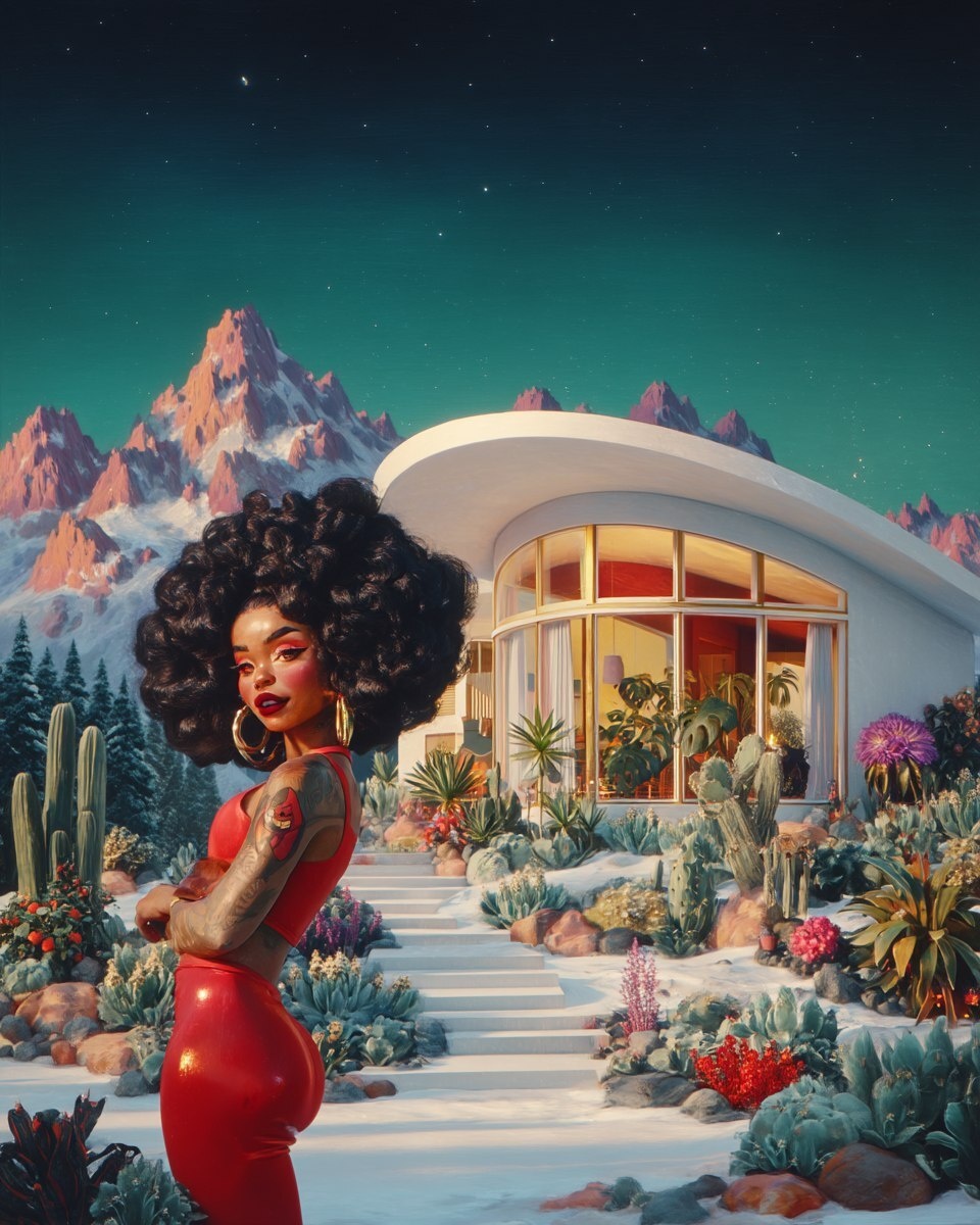 Создано на основе запроса: mid-century modern kawaii Salish space opera