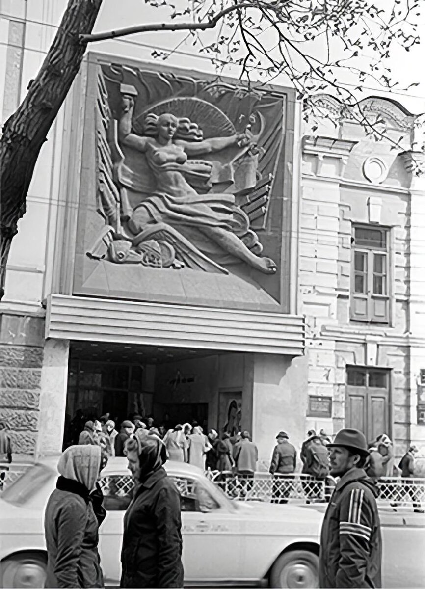 В ответ на пост Начало истории в предыдущем посте. В 1977 в Красноярске после реконструкции открылся кинотеатр «Октябрь». Встречал впечатлённых зрителей горельеф «Свобода», созданный автором проекта Ю.П. Ишхановым, скульптором А.Д. Давыдовым и архитектором Э.М. Пановым. Мы видим большой квадрат искусственного камня с изображением эффектной фигуры с серпом и молотом в руках. За спиной революционерки оружейные и пушечные дула. На фоне полукругом, подобно восходу солнца, надпись «Пролетарская Революция» и языки пламени вместо лучей нового дня, нового времени. Под ногами свободной женщины — поверженный геральдический орёл и символы монархической власти: скипетр и держава. По рассказам, авторы вдохновлялись знаменитой французской картиной «Свобода, ведущая народ» Эжена Делакруа, закрепивший изобразительный дух и символ революции свободы на века (1830 год, фото 5). Интересно, что на первых эскизах о яркой даме речи не шло. В первоначальных набросках горельеф выглядел иначе, с изображен