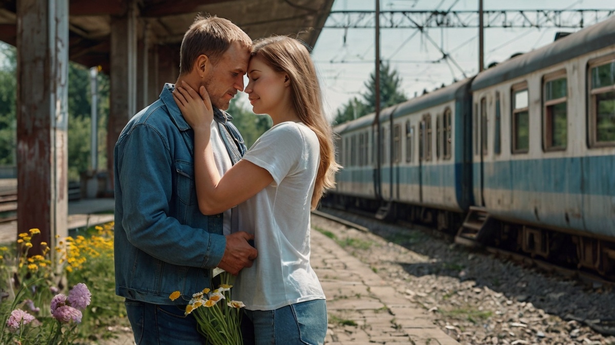 Электричка медленно подползала к платформе. Нина смотрела в окно, считая секунды до остановки. Сквозь стекло она уже видела его — Андрей стоял чуть в стороне от других встречающих, высокий, слегка ссутулившийся, в своей неизменной серой куртке. Такой родной. В руках он держал полевые цветы, собранные наспех, кое-где еще с корешками земли.