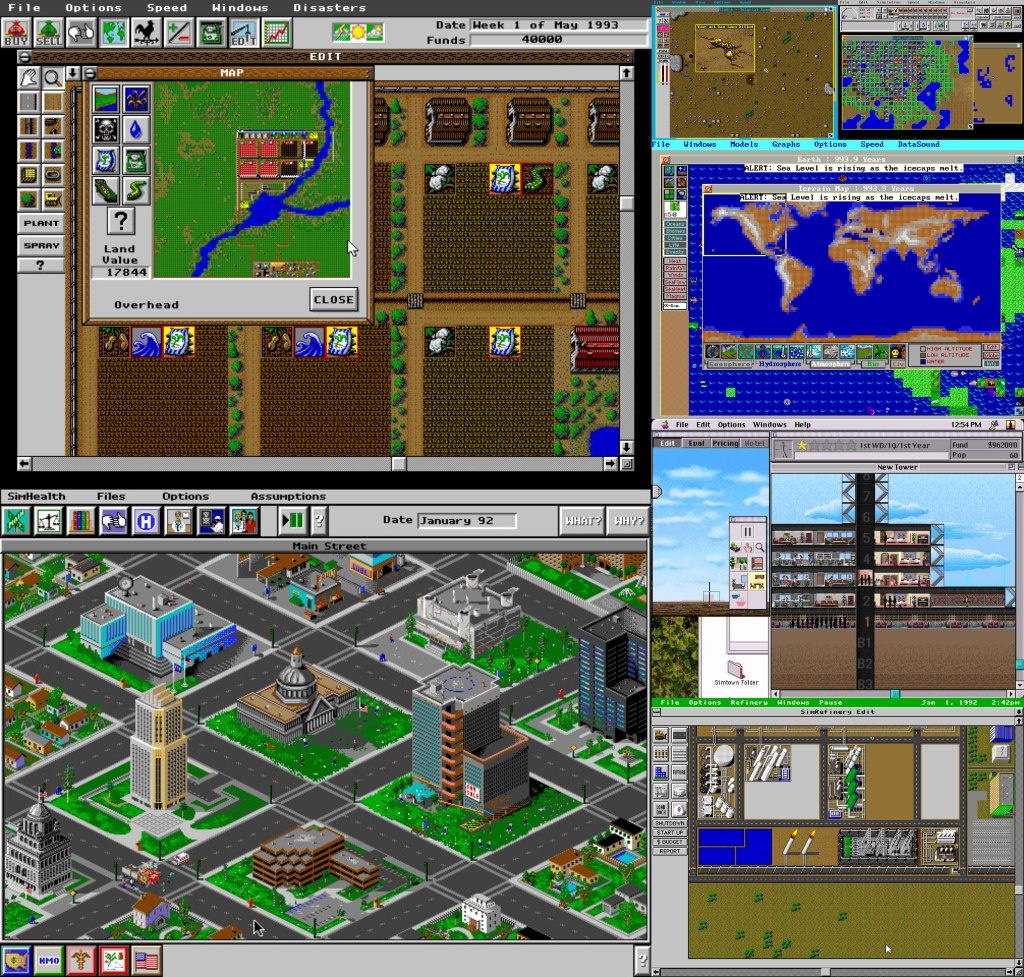 Сделал пачку Sim игр от Maxis получился вот такой список доступный для игры в браузере на DosZone. Поиграть можно здесь: - SimLife - SimEarth - SimFarm - SimHealth - SimRefinery - SimAnt - SimTower - SimCity - SimCity 2000