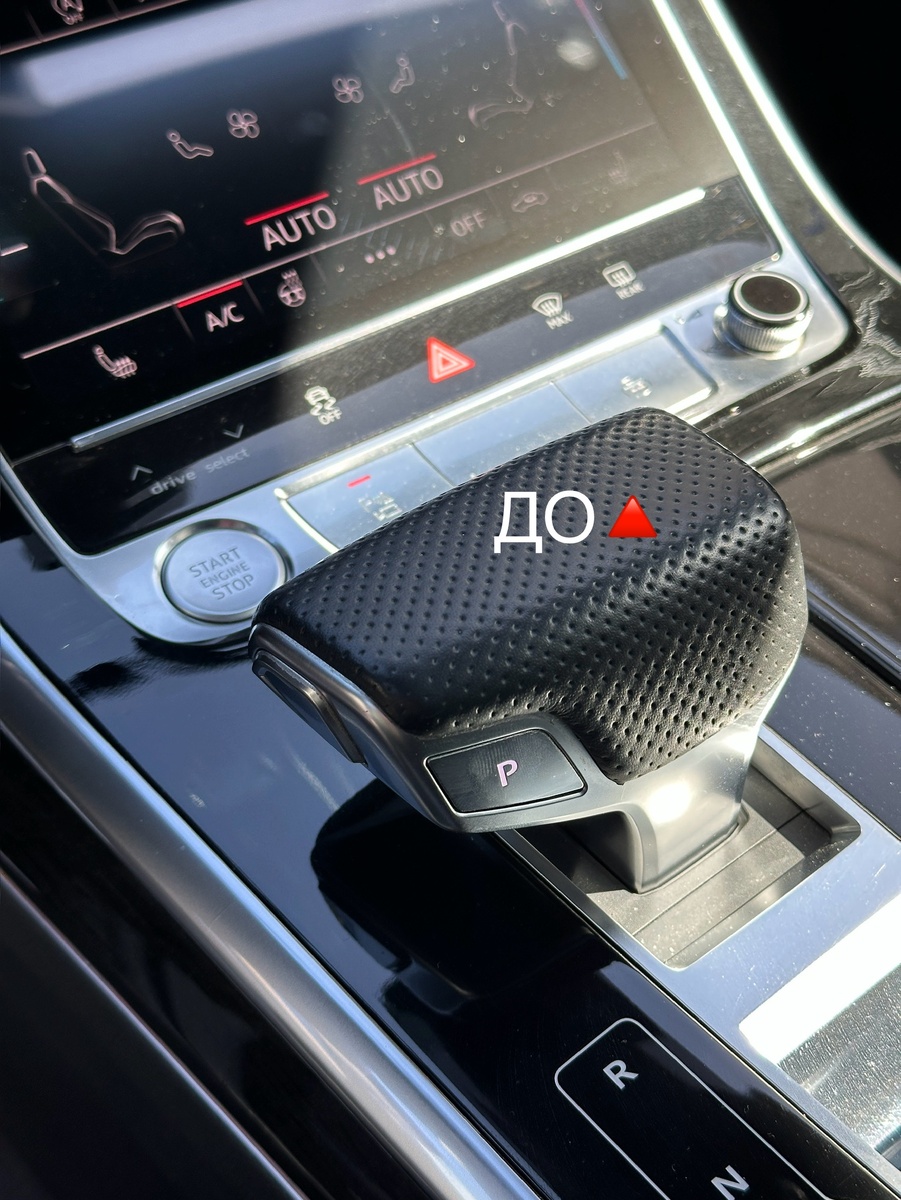 Оклейка Audi Q8 в цветной полиуретан вместе с дверными проёмами. Эксклюзивный перешив руля и ручки КПП. Для полной замены цвета кузова автомобиля недостаточно просто оклеить его снаружи, также нужно оклеить дверные проёмы и дверь с обратной стороны, как мы это сделали на Audi Q8. И вот такая замена цвета намного более трудоёмкая, затратная по времени, требующая особого мастерства и чуть дороже выходит по цене, но зато конечный результат получается намного лучше! Вы открываете двери, багажник и нигде не просвечивается настоящий цвет автомобиля. Так же мы освежили молдинги, они были в царапинах, покрасив их под оригинал в чёрный глянец. И перетянули руль. Комбинация из натуральной кожи + алькантара. Ручку КПП перетянули в алькантару.