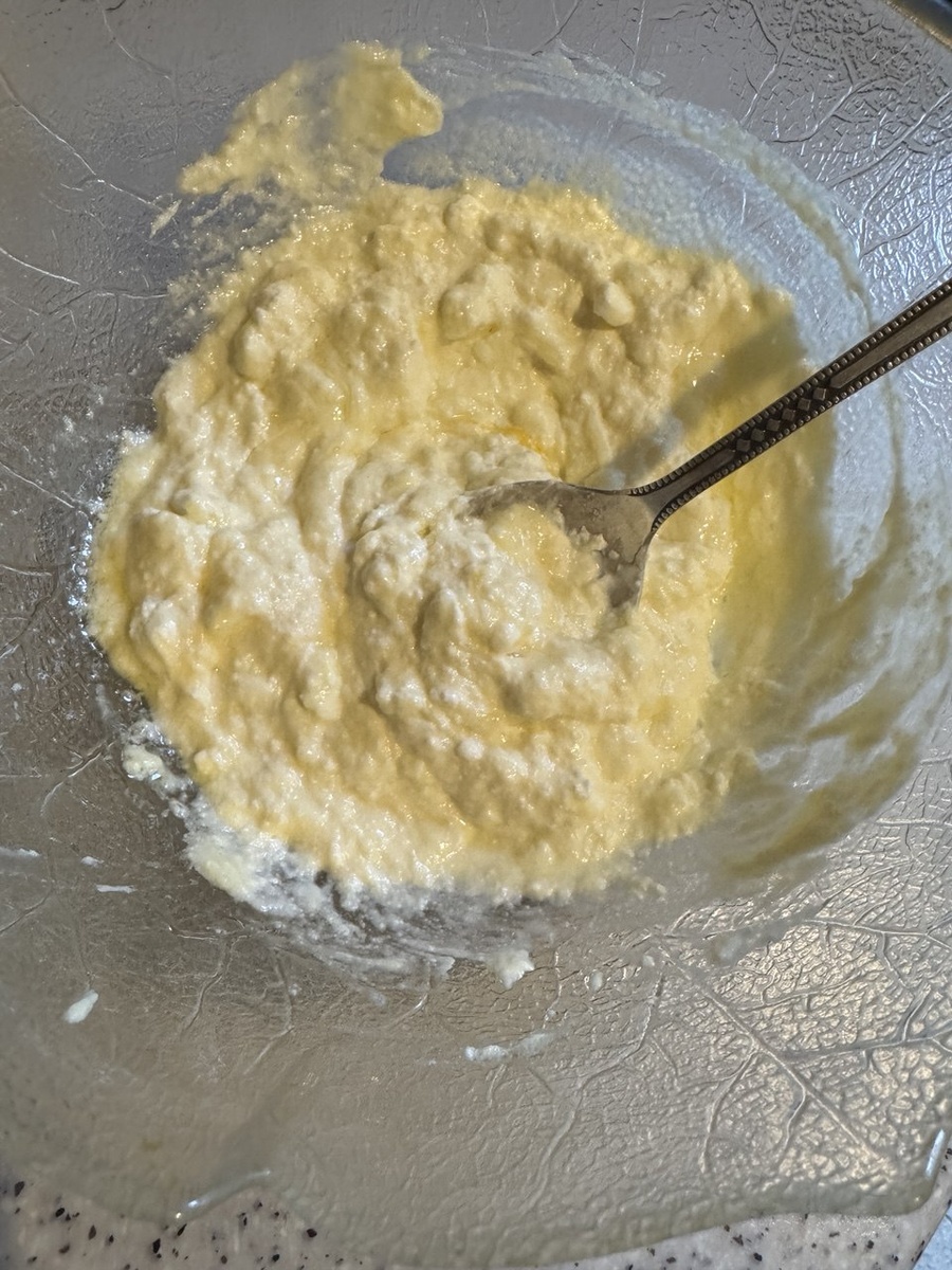Берем пачку рикотты и смешиваем с одним яйцом, добавляем 40 мл растительного масла, я взяла оливковое. В полученную однородную массу добавляем две столовых ложки сахара, пачку ванилина и чайную ложку разрыхлителя. Потом в тесто надо добавить муку, можно любую - 120 грамм. Снова все смешиваем и выкладываем тесто в формы для кексов. И ставим в разогретую духовку на 35 минут при температуре 180 градусов.