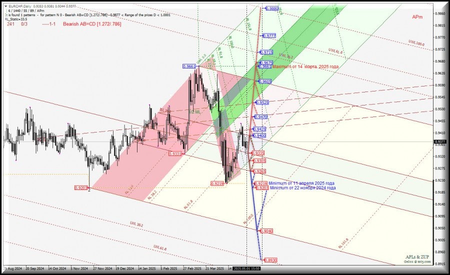 https://basechop.ru/wordpress/?p=40915 Операционный масштаб Minor (таймфрейм Daily) EUR/CHF – Daily – обзор вариантов развития движения данного валютного инструмента с 02 мая 2025 г. ___________________ Euro vs Swiss Franc Развитие движения EUR/CHF-Daily с 02 мая 2025 года продолжится в соответствии с отработкой и направлением пробоя границ зоны равновесия (0.9265 – 0.9335 – 0.9400) вил старшего операционного масштаба Minor-Daily с учетом отработки начальной линии SSL (0.9305) вил младшего операционного масштаба Minute-h4. Восходящее движение. Пробой уровня сопротивления 0.9400 на верхней границе ISL38.2 зоне равновесия вил старшего операционного масштаба Minor-Daily направит движение EUR/CHF к границам канала 1/2 Median Line Minor-Daily (0.9425 – 0.9470 – 0.9525) и зоны равновесия (0.9525 – 0.9605 – 0.9675) вил младшего операционного масштаба Minute-h4. Нисходящее движение. В случае пробоя нижней границы ISL61.8 (уровень поддержки 0.9265) зоны равновесия вил старшего…