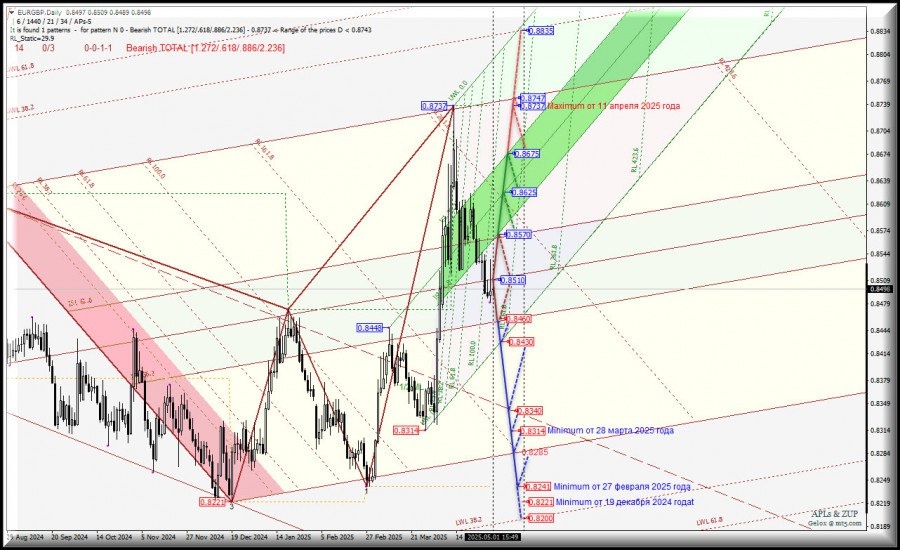https://basechop.ru/wordpress/?p=40917 Операционный масштаб Minor (таймфрейм Daily) EUR/GBP – Daily – обзор вариантов развития движения данного валютного инструмента с 02 мая 2025 г. ___________________ Euro vs Great Britain Pound Развитие движения EUR/GBP-Daily с 02 мая 2025 года продолжится в соответствии с отработкой и направлением пробоя границ зоны равновесия (0.8460 – 0.8510 – 0.8570) вил старшего операционного масштаба Minor-Daily. Восходящее движение. Пробой достаточно сильного уровня сопротивления 0.8570 на пересечении верхней границы ISL61.8 зоны равновесия вил старшего операционного масштаба Minor-Daily с ISL61.8 Minute-h4 вернет развитие движения EUR/GBP в зону равновесия (0.8570 – 0.8625 – 0.8675) вил младшего операционного масштаба Minute-h4 с перспективой достижения maximum 0.8737 от 11 апреля 2025 года и конечной линии FSL Minor-Daily (0.8747). Нисходящее движение. При последовательном пробое нижней границы ISL38.2 (0.8460) зоны равновесия вил старшего…