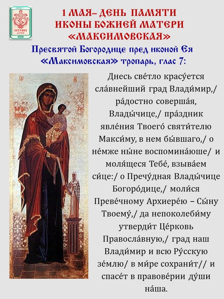 Икона написана в 1299 г свт. Максимом, митрополитом Владимирским, прибывшим во Владимир для перенесения из Киева Первосвятительской кафедры. В ночном видении явилась ему Божия Матерь: Рабе мой Максиме! добре сотвори, яко пришел еси семо посетити град Мой. И подав ему омофор, рекла: Приими сей омофор и паси во граде Моем словесные овцы. Проснувшись, митрополит увидел на своих руках омофор. Явление Пресвятой Богородицы было знамением Небесного благословения на перенесение митрополии из Киева во Владимир. Омофор хранился во Владимирском Успенском соборе 112 лет. В 1412 г. во время нашествия татар омофор был скрыт ключарем собора Патрикием, он был замучен татарами. Икона была установлена в Свято-Успенском соборе, прославилась многими чудесами и стала всероссийской святыней. в 1920 г. икона поступила в собрание Владимиро-Суздальского музея-заповедника, там находится и сейчас.