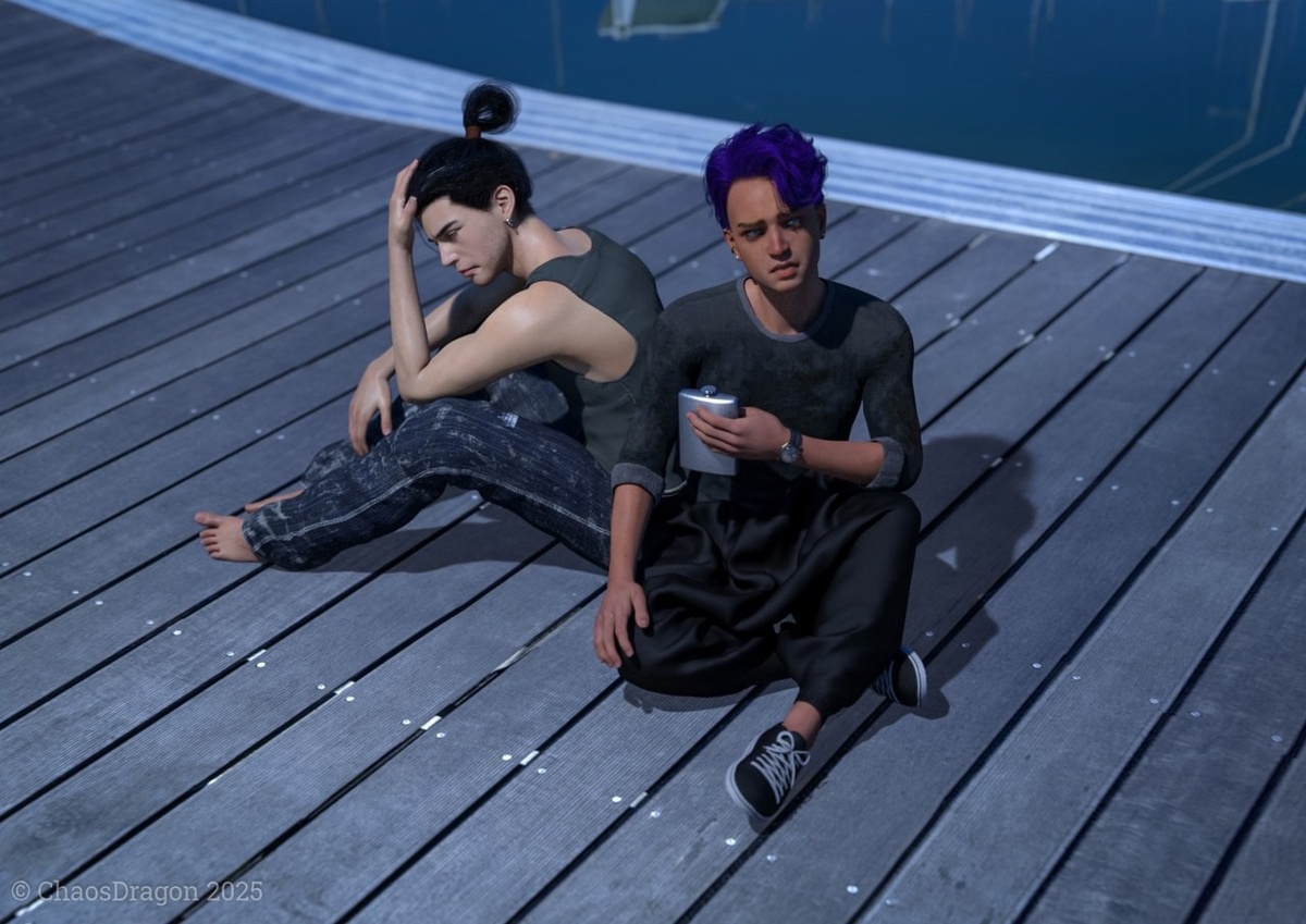 📒 С корабля ему пришлось тащить Бастиана на себе — тот выглядел совершенно ошалело, и Дэн решил, что на твёрдой земле, даже на мостках, парню будет гораздо лучше. Пусть даже опора из самого Дэна сейчас никакая. То есть — никакущая. Попросту, в стельку. Впрочем, нет, не настолько всё плохо, но вот усадить испанца на деревянный настил мостков и самому усесться рядом — это идея хорошая, это Дэн понимал даже в таком состоянии. На гневное "приветствие" Советника и даже на осклабившихся оружием дактилий он отреагировал философски. То есть — никак, только чуть ухмыльнулся уголком рта. В который тут же отправил горлышко фляжки, чтобы сделать очередной глоток. 📒 Картинка, персонажи, текст — мои. 📒 Игра — Пути Олимпа #CD_pics #Дэнчик #Бастиан #пути_олимпа