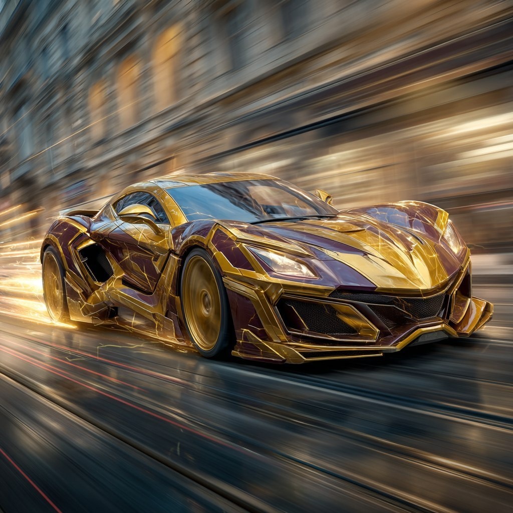 Создано на основе запроса: a superhero's snazzy supercar racing down the street at light speed