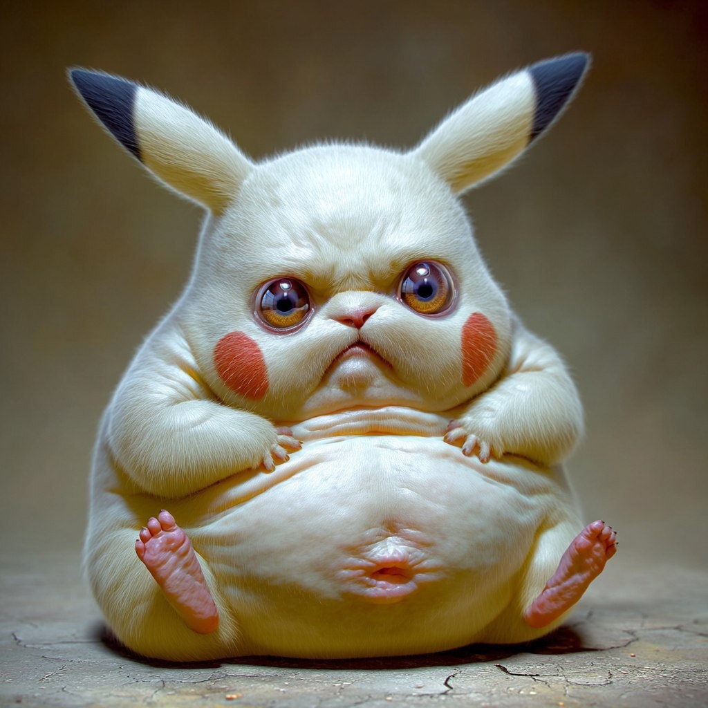 Создано на основе запроса: a hyperrealistic image of pikachu, but he is morbidly obese, he is in a sitting position, so fat that he's belly looks like its spilling to the sides style of Tiago Hoisel --- Автоперевод: Гиперреалистичный образ Пикачу, но он болезненно страдает ожирением, он находится в сидячем положении, настолько толстый, что живот выглядит так, будто его пролисты Интересно выглядит? 🤔 https://dzen.ru/id/65c0c65c86e4f837c27b24d7 #ИИ #AI #нейросеть #midjourney #art