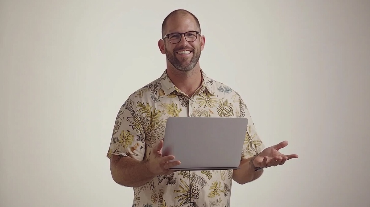 Создано на основе запроса: A happy male software engineer holding a laptop, wearing a smart-casual shirt and glasses, standing isolated on a
