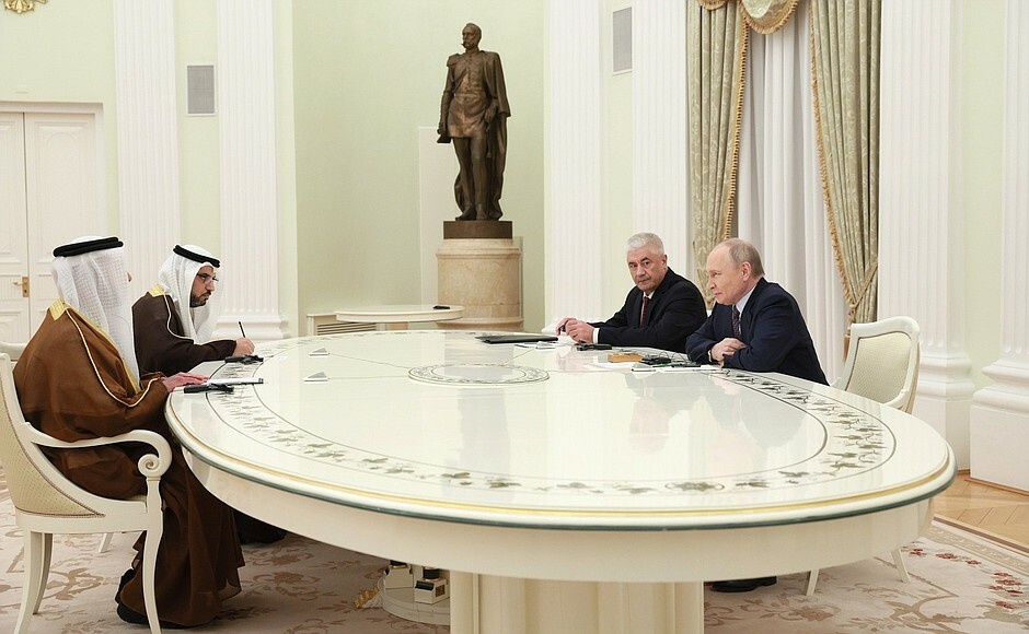 Владимир Путин принял в Кремле заместителя Премьер-министра, Министра внутренних дел Объединённых Арабских Эмиратов Сейфа Бен Заида Аль Нахайяна. Во встрече также принял участие Министр внутренних дел России Владимир Колокольцев.