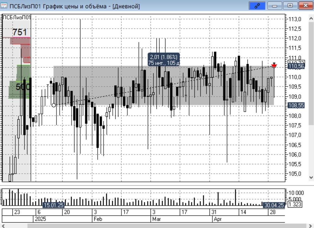 Продолжаем закрывать позиции по облигациям, которые покупали выше номинала. Закрываем сделку по облигациям ПСБЛизП01 (RU000A10AA10), годовой купонный доход 25%, фиксируем 1,8% прибыли. Перекладываемся в облигации МВ ФИН 1Р6 (RU000A10BFP3), годовой купонный доход 26%, погашение 11.04.27.