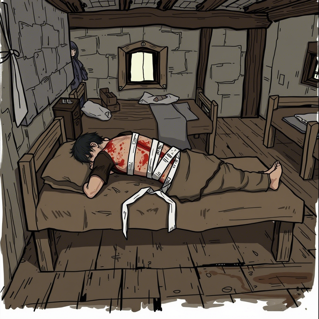Прямо на койке лазарета я уснул. Так я проспал весь день. Проснувшись от боли в спине, я захотел пить. С трудом выйдя из палатки, я увидел бочку с водой. Подойдя к ней, опустил туда всю голову и начал пить. Напившись, подняв голову, я увидел, как несколько воинов идут голыми к большому костру, где сидят все - там находилась баня. Большая палатка, изнутри шёл пар. Очень простое применение: внутри палатки находится большой чан с длинной трубой наружу. В чане горят дрова, и когда он разогревается, его обливают водой, чтобы появился пар. По смехам и звучанию баллад, им там было весело. От боли не хотелось идти в баню. Увидев неподалёку чан с водой - прямо под мой рост - с трудом туда залез. Вода оказалась ледяной. "То, что нужно", - подумал я про себя. Закрыв глаза, я воспроизводил в памяти битву с вражеским военачальником. "Было весело", - сказал я шёпотом. Открыв глаза, я увидел, что кто-то, пригнувшись, убегал, прячась, чтобы его не заметили. Был в грязной оборванной одежде, с шапкой,