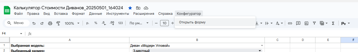 Как мы превратили обычную Google-таблицу в «умный» конфигуратор диванов
