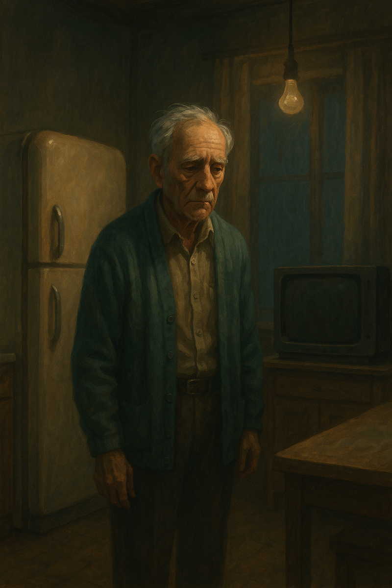 Он остался один. Телевизор говорил вместо людей, пока однажды не замолчал и холодильник — в доме стало по-настоящему тихо. Именно тогда началось что-то важное.