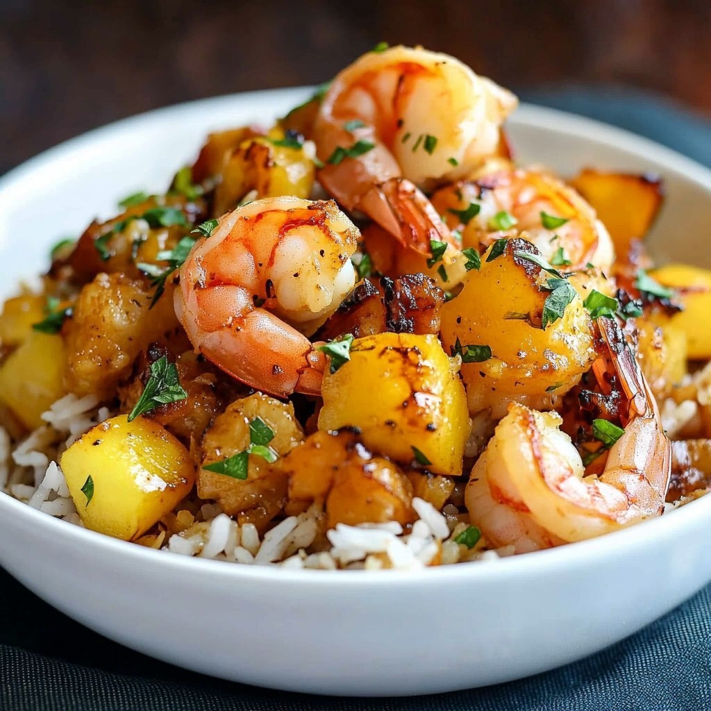 Создано на основе запроса: | Title: Tropical Shrimp Rice Bowl | Close-up Shot right view, taken by a photographer with a high quality