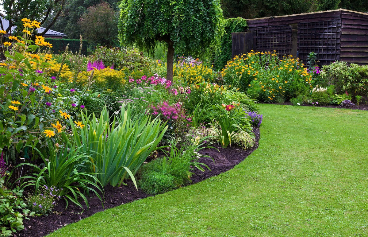 Цветник по моему мнению должен быть отделен от газона или бордюром или полосой темной рыхлой земли, и граница травы и цветника должна быть четко выражена, хотя возможно, это моя субьективная оценка.