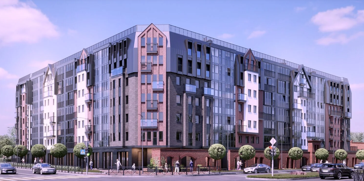 Ганзейские мотивы в сочетании с фахверком в современном воплощении удачно вписываются в существующее окружение комплекса. Наш подход — максимально сохранить историю, но в то же время обеспечить связь с современностью. И благодаря разнообразию фактур и богатству архитектурной обработки авторам проекта удалось придать внешнему облику комплекса изысканность и долговечность. Тёмная, частично скатная кровля визуально снижает этажность комплекса. Вентилируемый фасад вертикально разделен на отдельные части, представляющие собой симбиоз различных фактур и покрытий. Проект включает благоустройство прилегающей территории: тротуары, замощенные плиткой. Придерживаясь принципа гармонии при проектировании ЖК, мы взяли за основу современные тенденции дизайна и архитектуры. И получились невероятно интересные планировки. Дело в том, что квартиры абсолютно не типовые. Каждый найдёт для себя изюминку: отличное естественное освещение, просторные кухни-столовые и ванные комнаты, а также гардеробные. На выб