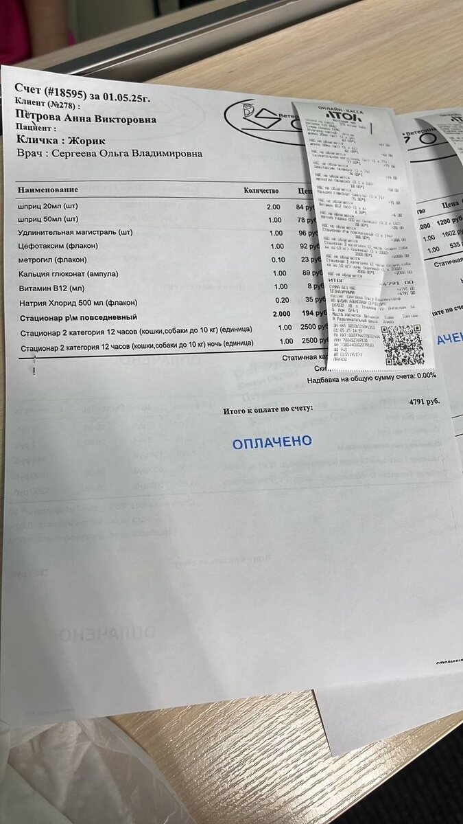 Оплатила счета в клинике