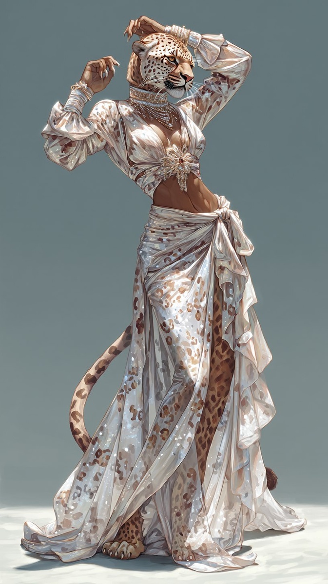 Создано на основе запроса: a beautiful supermodel babboon dancing with a white shimmering silk dress at the babboon prom night