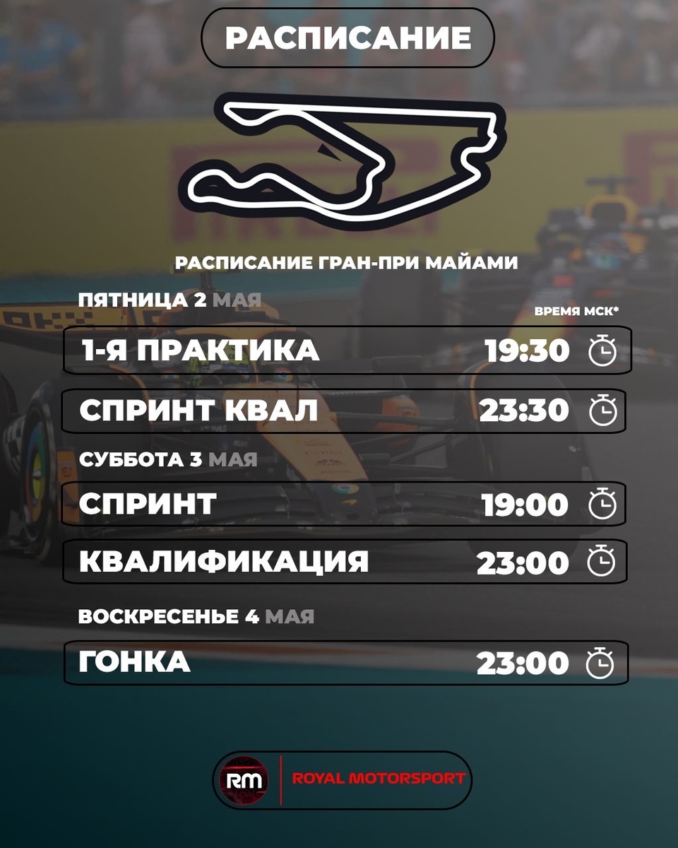 Расписание на уикенд (02.05-04.05) от Royal Motorsport. Время МСК