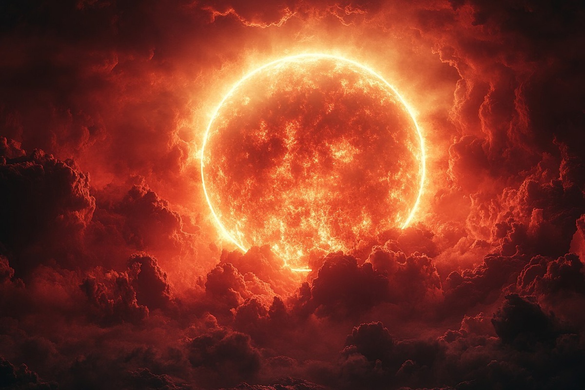 Создано на основе запроса: A cloudy sky, black clouds, red reflections, in the sky the CHAT GTP logo made of light, cinematic quality, photo