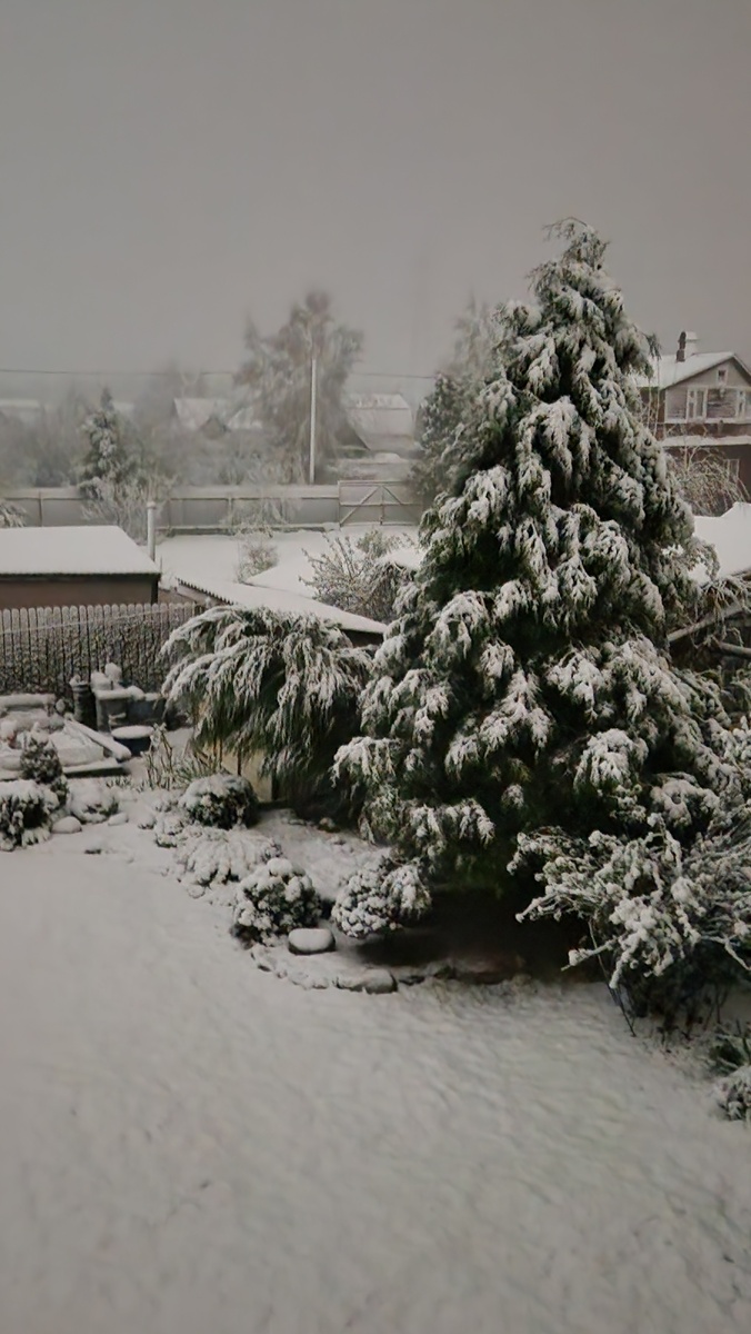 У ПРИРОЛЫ НЕТ ПЛОХОЙ ПОГОДЫ.... Ночь, все заснежило, все завьюжило. Снег идёт не прекрощая. Вот такой первомай. Прощаемся с несостоявшимся урожаем. В этом году будем наверное опять без ягод. Зима свое берет. Подмосковье северо-запад.