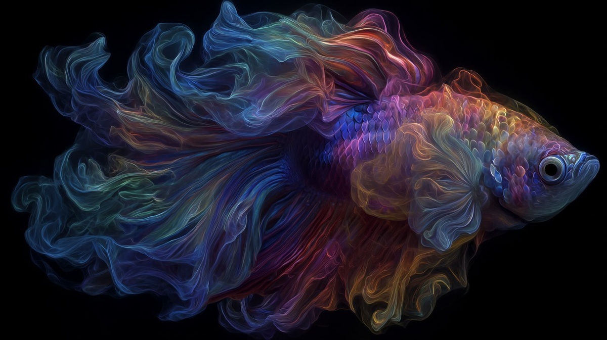 Создано на основе запроса: a rainbow colored smoke cloud beta fish