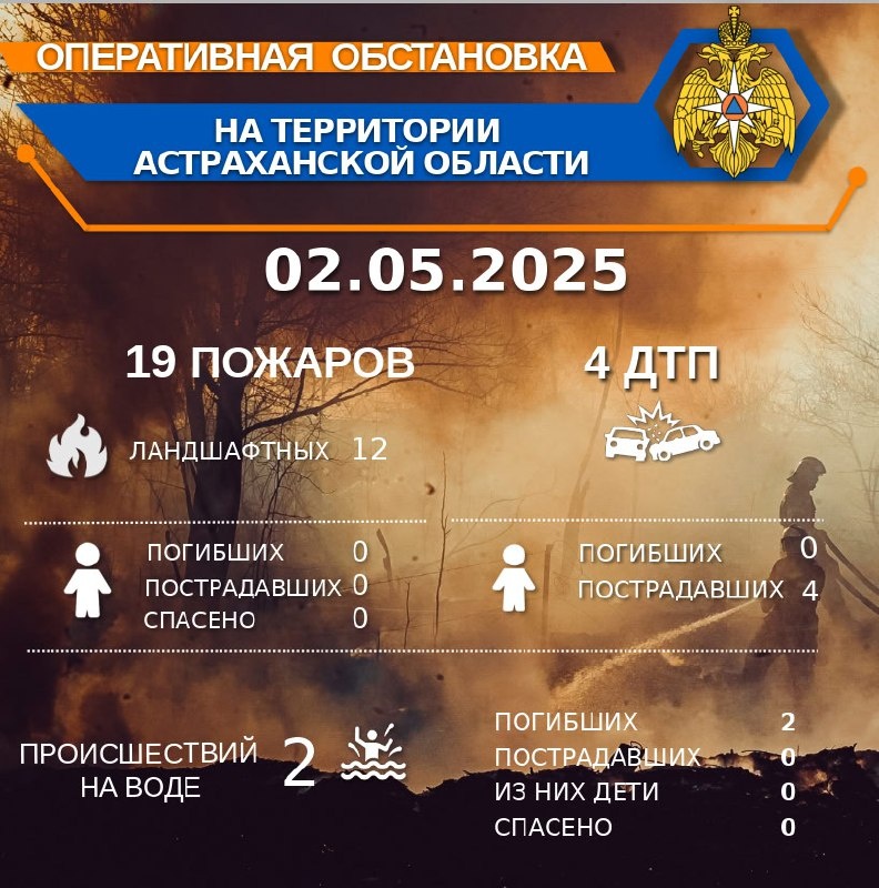 🚨Оперативная обстановка на территории Астраханской области по состоянию на 00:00 02.05.2025