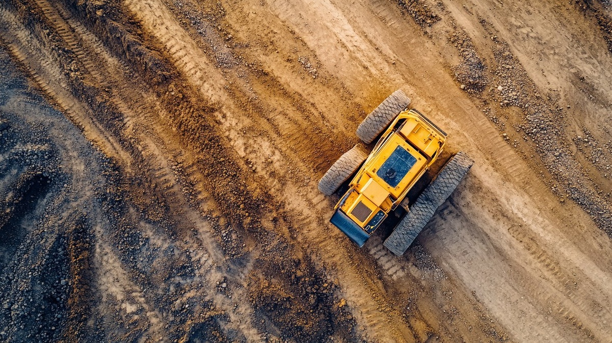 Создано на основе запроса: realistic overhead view of compacted soil with small rocks, construction site ground, dry dirt, tire marks, realistic detail