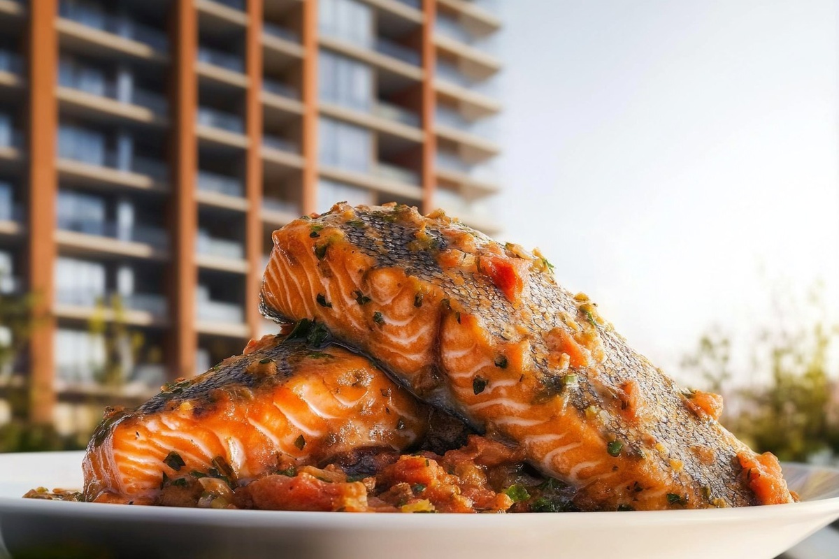 Создано на основе запроса: | Title: Marry Me Salmon | STYLE: Close-up Shot right view | EMOTION: realistic as possible | SCENE: KEYWORD | TAGS: High-end food photography, clear composition, mouth-watering, indulgent, gourmet, cuisine, recipe | CAMERA: Nikon Z7 | FOCAL LENGHT: soft direction light | PRODUCTION : food stylist | TIME : daytime | LOCATION TYPE : kitchen near windows, --- Автоперевод: | Неплохо вышло? 🤔 https://dzen.ru/id/65c0c65c86e4f837c27b24d7 #ИИ #AI #нейросеть #midjourney #art