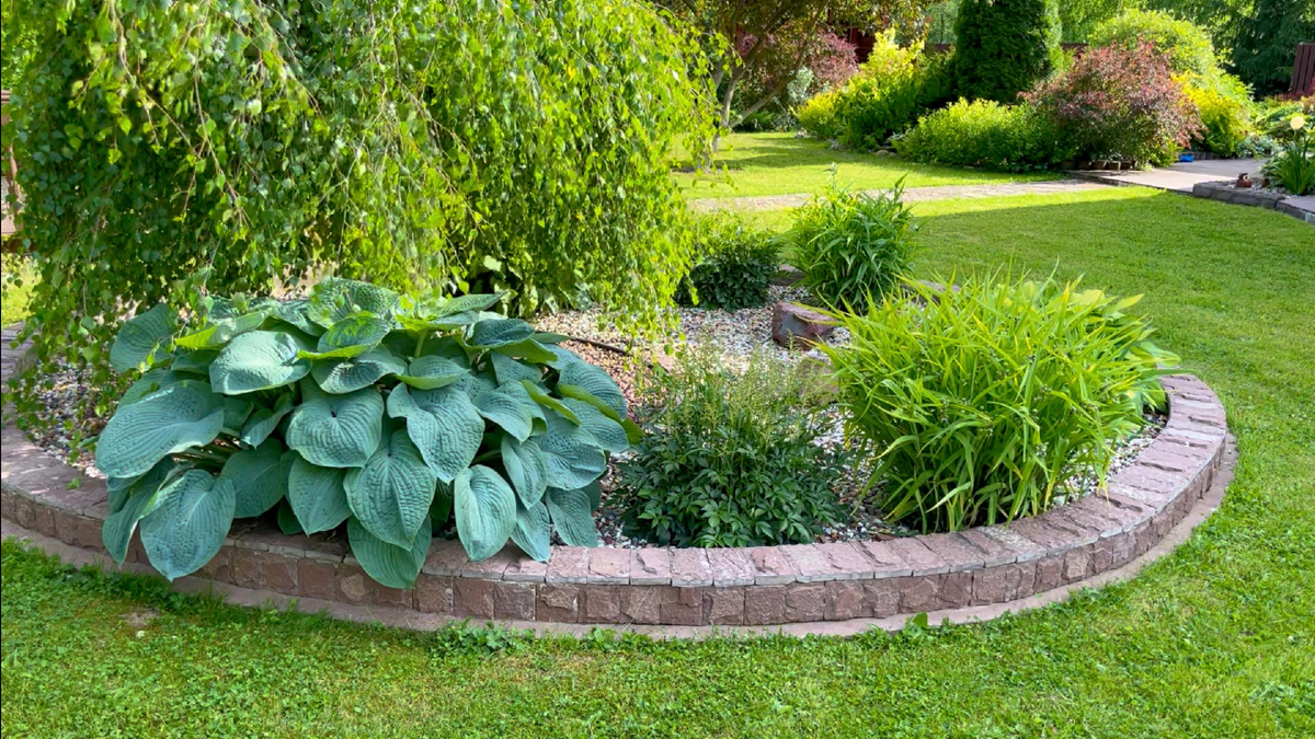Аккуратный контур клумбы или рокария - это и удобно и красиво. Как вписать бордюр в стиль сада и минимизировать работу по кошению травы вдоль бордюра.