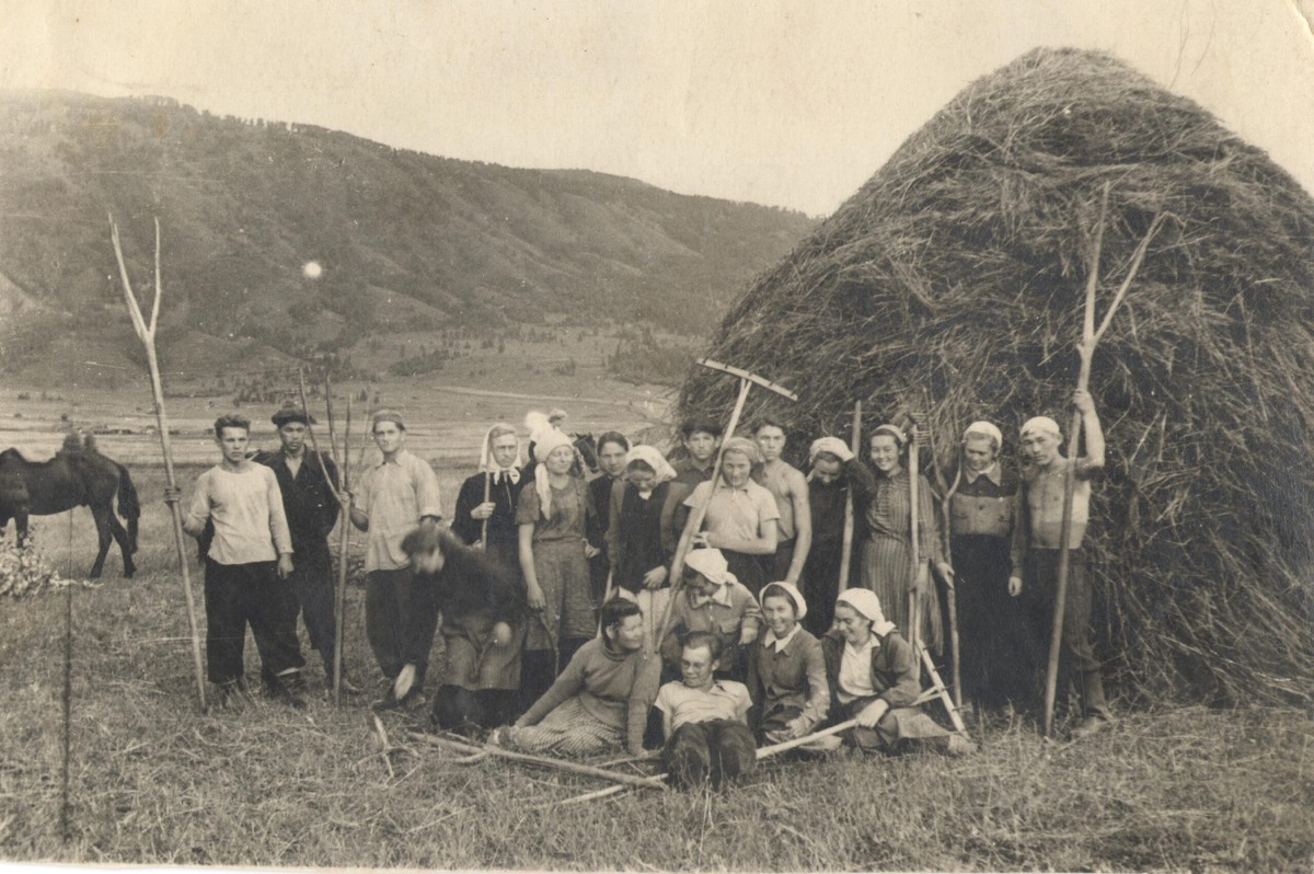 Как всегда, на физмате был недобор. Пополнился факультет теми, кто не прошел по конкурсу в другие вузы – технические, медицинские, гуманитарные. В октябре 1954 года в Барнауле открылся мединститут, и наш факультет обеднел: две трети из пришлых уехали. Сплочение оставшихся происходило на сельхозработах. Студенты первого – третьего курсов физмата работали в Усть-Коксинском районе. Первого сентября колонна машин стояла у корпуса (того самого, где физмат находится сейчас). Все факультеты в основном уезжали в горы на сенозаготовку, а в Усть-Коксу – еще и на хлебоуборку. Группа наша состояла главным образом из простых ребят. Куратор Я.Е. Амстиславский – как-то в стороне, жил преимущественно в райцентре, раза три появлялся. А с нами были три старшекурсника – Гена Добрынин, Володя Тоймешев, Вася Шабураков и лаборант Володя Хазов. Они вкалывали вместе с нами. Вспоминать условия не особо хочется: баня – раз в месяц, жили в избушке три на три с половиной метра, спали вповалку на нарах все: нас 27 – 28 человек, старшие ребята и два или три тракториста. Переворачивались с боку на бок по команде и т.д. Правда, кормили неплохо, поварили по три человека (две девушки и один парень) по очереди. Но жили весело! В отличие от современной молодежи – скромно, с большим уважением друг к другу, с точки зрения пола, религии, нации, материального положения – все равны.