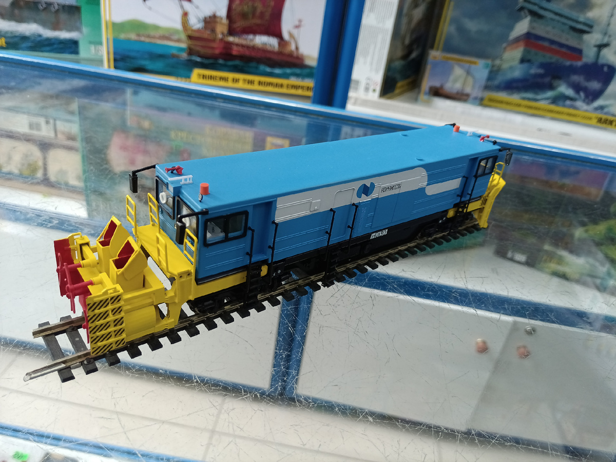 Мастерская Major Models представила новинку в масштабе 1:87 - модель и набор для самостоятельной сборки модели ССМ "Ураган" Тихорецкого машиностроительного завода. Снегоочистительная самоходная машина "Ураган" предназначена для уборки снега. Машина оборудована светодиодными прожекторами и сигнальными фонарями, системой предотвращения замерзания и запотевания стекол при самых сильных морозах, автоматической системой обнаружения и тушения пожаров АСОТП и автоматизированной системой контроля и управления АСКУМ. При работе ССМ "Ураган" срезает снег перед собой благодаря роторам, и по сторонам от путей благодаря наличию плуга. Плуг шириной 3,15 м находится в задней части машины по ходу движения), снегоуборочный ротор - в передней части перед кабиной. Ширина роторного снегоочистителя в рабочем положении (с расширителями) составляет 3,75 м. Дальность отбрасывания снега составляет до 35-40 м. В качестве силовых агрегатов рабочего оборудования и энергоустановки шасси использованы три дизельных