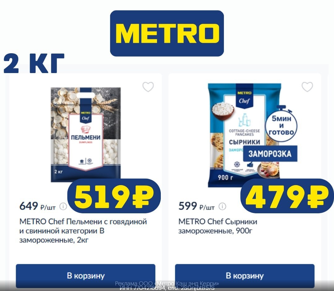 Скидка 3 000₽ в Metro Cash&Carry Экономим на первых покупках! Особенно актуально при поездке на дачу Для этого 👇 Переходи по ссылке vk.cc/cKz5lr Зарегистрируй карту покупателя по промокоду 💙 6b6cb Получи: — 500₽ за регистрацию карты (действуют 30 дней) — Еще 500₽ за первую покупку в течение 30 дней с момента выпуска карты (действуют 14 дней) — И еще 500₽ за вторую покупку в течение 14 дней после первой покупки (действуют 14 дней) + 1500₽ на покупки в онлайн-магазине 🔥 ИТОГО: 3000 бонусных рублей на покупки в Метро (1₽ = 1 бонус) Доступна оффлайн для новых клиентов. Макс списание до 20%. Не действует на табак, алкоголь, безалкогольное вино, подарочные карты METRO, формат оплаты «Предоплата».