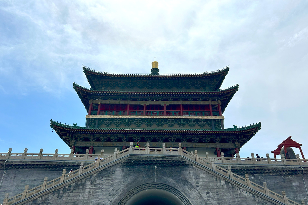Недалеко от Южных ворот Городской стены есть две башни - Колокольная и Барабанная. И на обе достопримечательности можно попасть, чтобы окунуться в историю и насладиться видом на Сиань с высоты. Мы ходили на Колокольную. Скажу сразу, долгой прогулки не получится. По сути вы просто подниметесь на видовую площадку, увидите старинный колокол, посмотрите на город, войдете внутрь башни. Там небольшой музей. На этом всё. Это с точки зрения впечатлений и зрелищности, а если рассматривать с исторического ракурса, то сооружение значимое и является символом города. Да, сама башня перестроена и колокол на ней заменен (первый разместили в музее, но этот так же изготовлен несколько сотен лет назад), но тем не менее все отсылки к истории сохранены - еще в 14 веке здесь начинали утро с колокольного звона, и сейчас у туристов есть возможность совершить это воображаемое путешествие во времени. Колокольная башня (钟楼 (Zhōnglóu)) Пешком на север от Южных ворот Городской стены, идти вдоль дороги минут 10