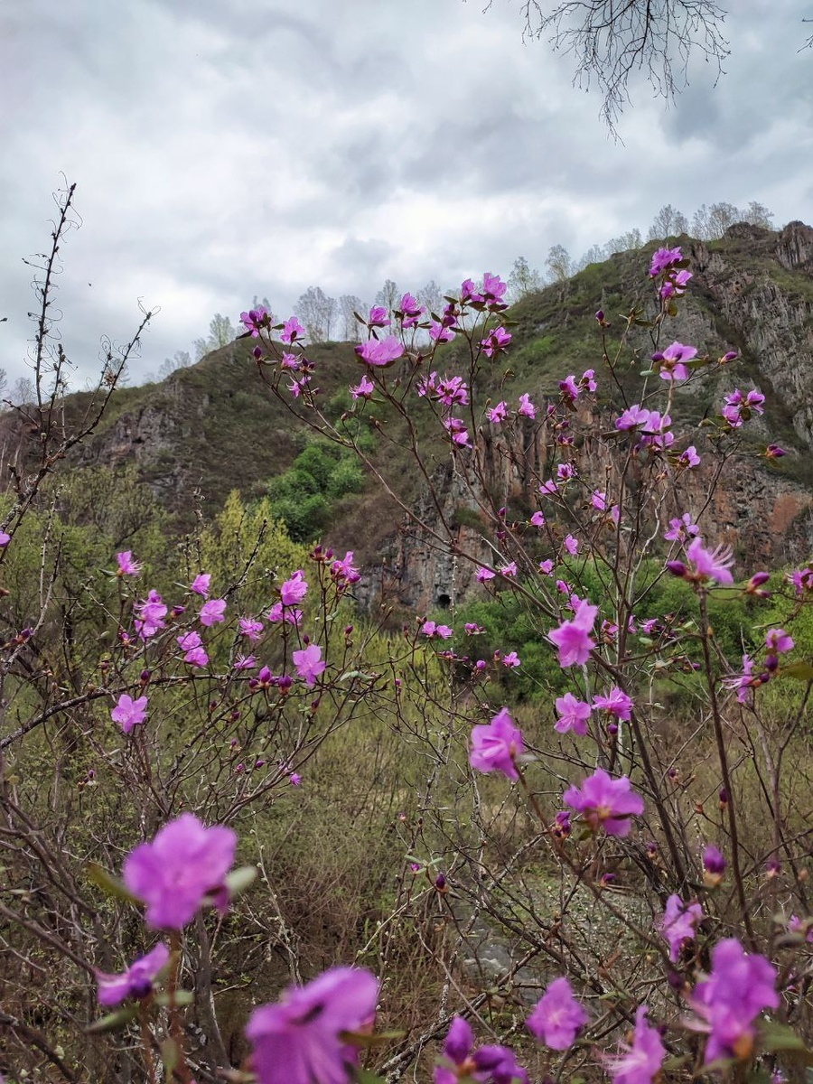 Пока ездили укорачивать котика, сквозь молодую зелень светило солнце, и яркими пятнами горел маральник вдоль Чемальского тракта. Но как любоваться, когда кот в переноске страдает. А дома — сколько угодно! До нас тоже добралось лиловое марево. 🌸💜🌸💜🌸 А! Это тот самый грот. Просится же в него золотой Будда?