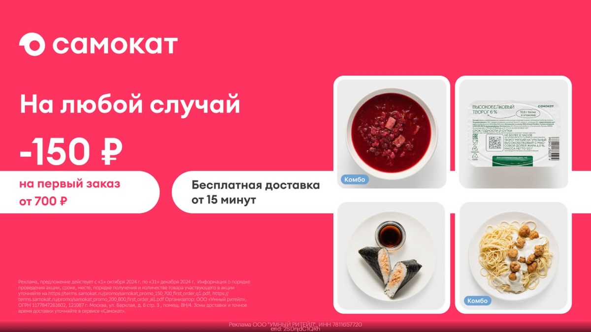 Отдыхайте дома - САМОКАТ со всем разберется!🛴 Переходите по ССЫЛКЕ vk.cc/cKkIfM Используйте промокод STTC6T34 на первую покупку от 700 руб - СКИДКА 150 руб! ⚡️Дождитесь быструю доставку (от 15 мин) Только для новых пользователей. Промокоды не суммируются с акцией на товары за 1 ₽.