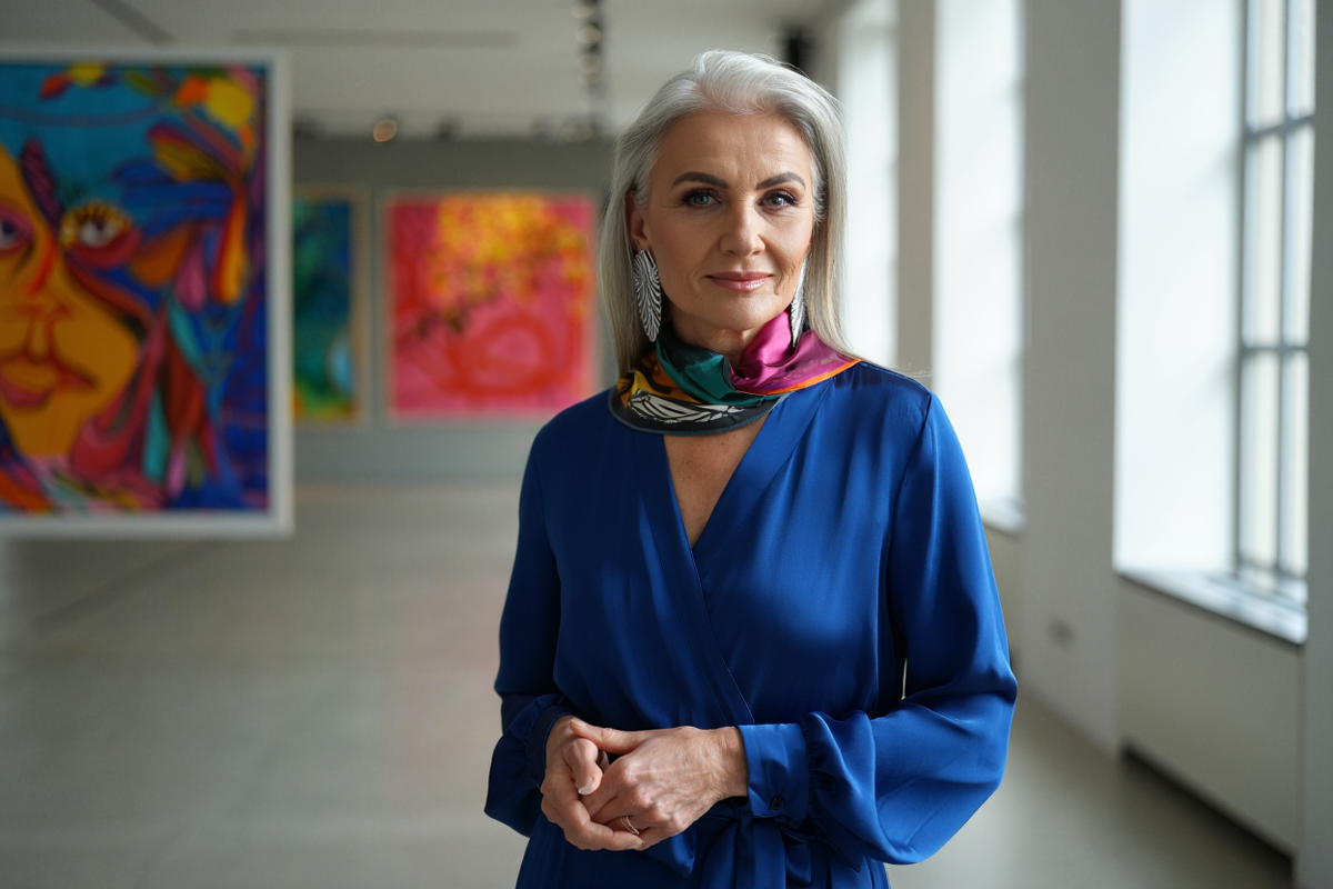 Недавно я встретила свою давнюю знакомую на открытии художественной выставки. Мы не виделись лет десять, но я сразу узнала её в толпе: элегантное платье глубокого синего цвета, крупные серебряные серьги, яркий шарф, уложенные волосы с благородной сединой. Она выглядела не просто стильно – она была заметной, запоминающейся.
